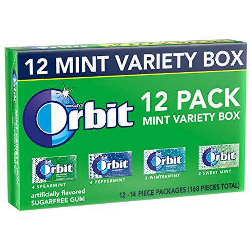 - Orbit Mint Variety Box contains a total of 12 packs of sugarfree chewing gum - 14 pieces per pack (168 pieces total)